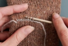 Slip the 5, (6, 7, 8, 9) stitches below the Thumb Hole onto one needle.